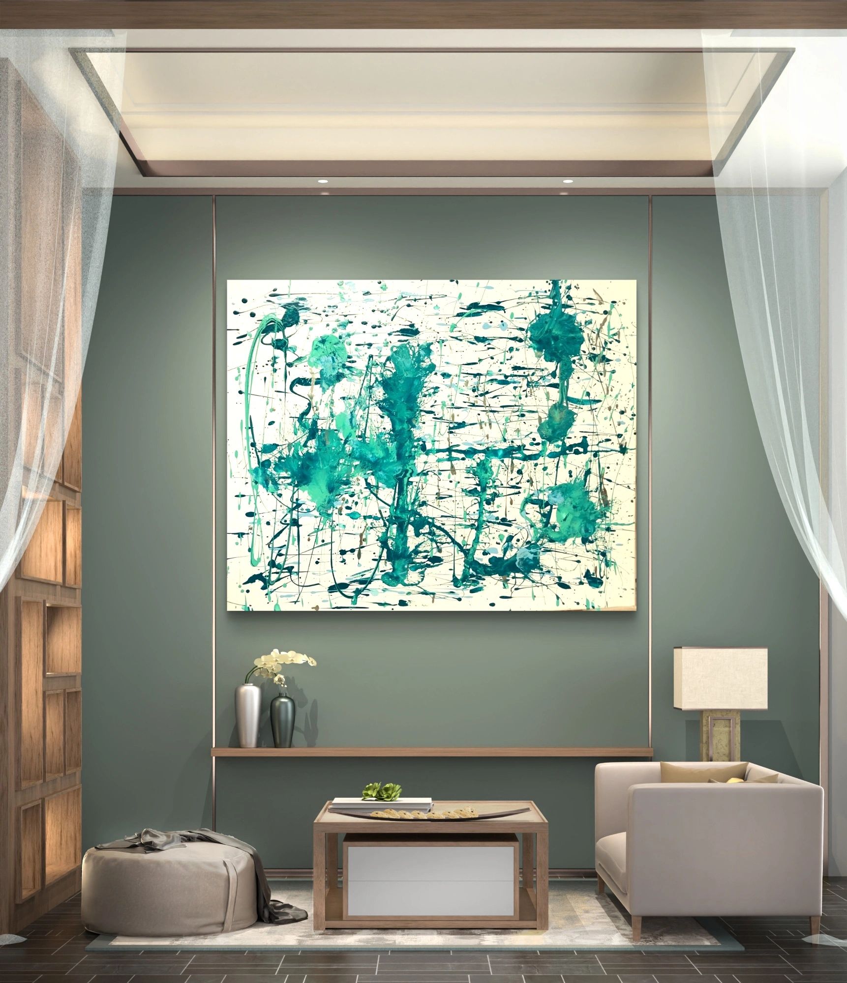 Alegría! is a special painting I created that brings together the many beautiful aspects of nature in one vibrant abstract composition. Filled with life and movement, the piece invites the viewer to slow down and look closely where a beautiful bird reveals itself as a gentle greeting from within the artwork.